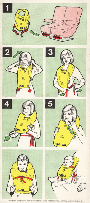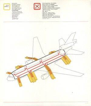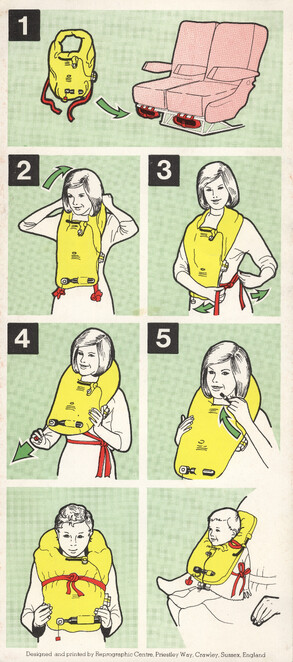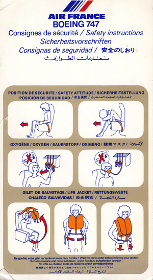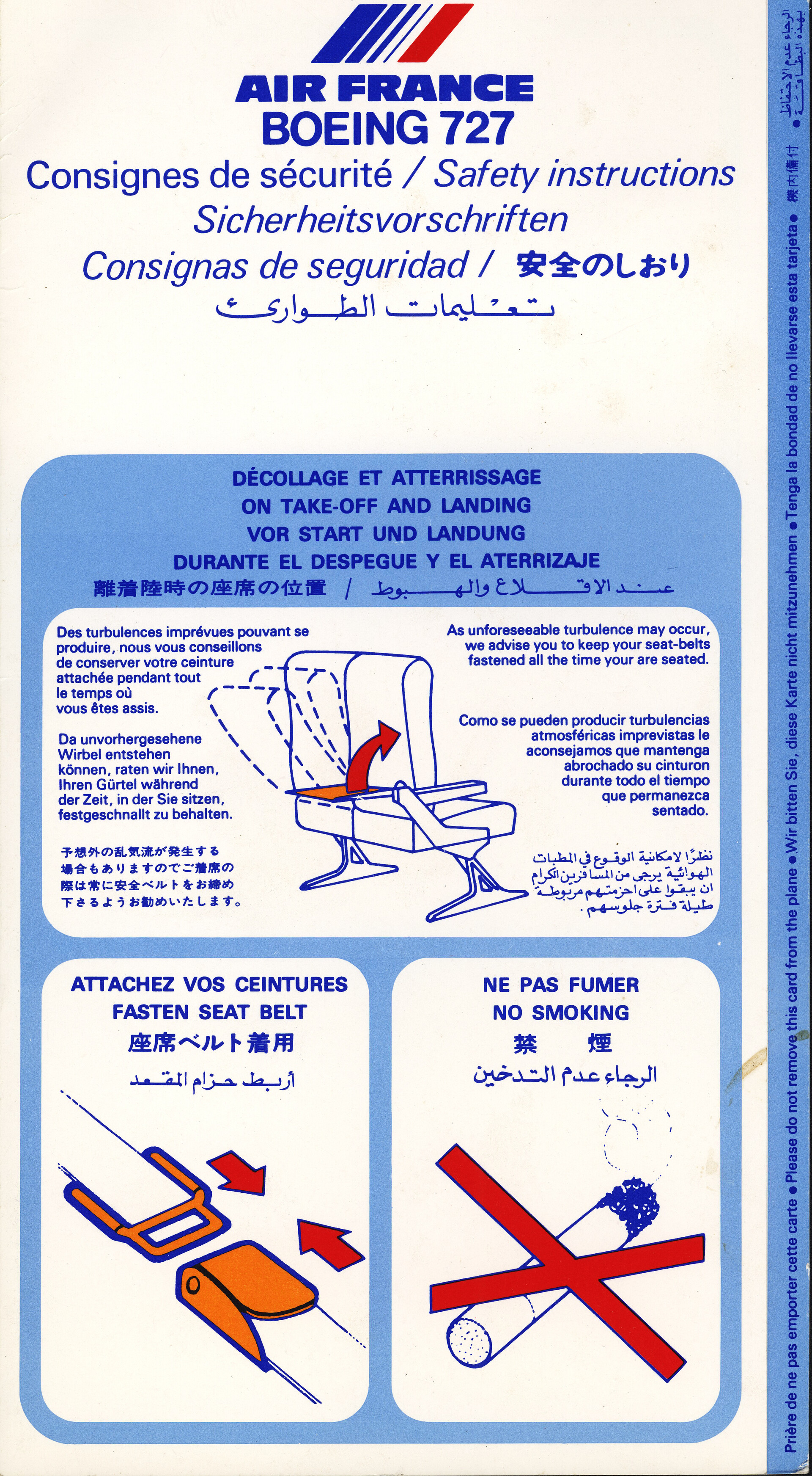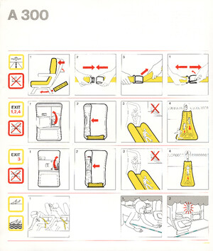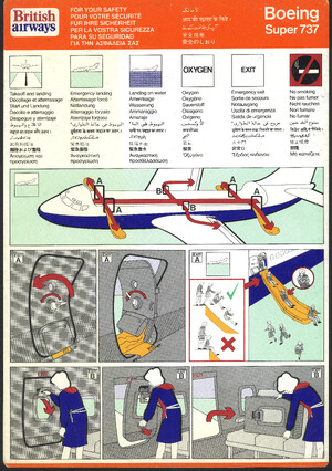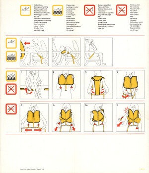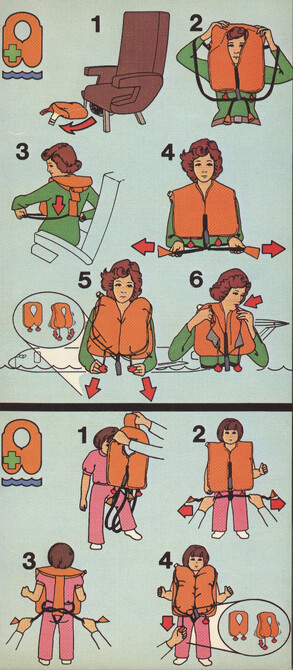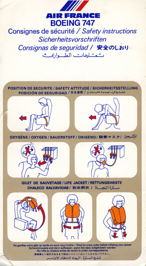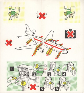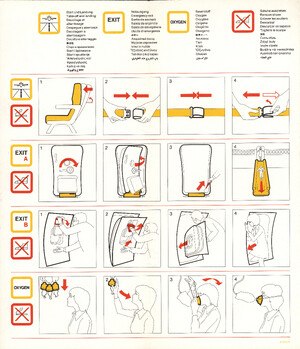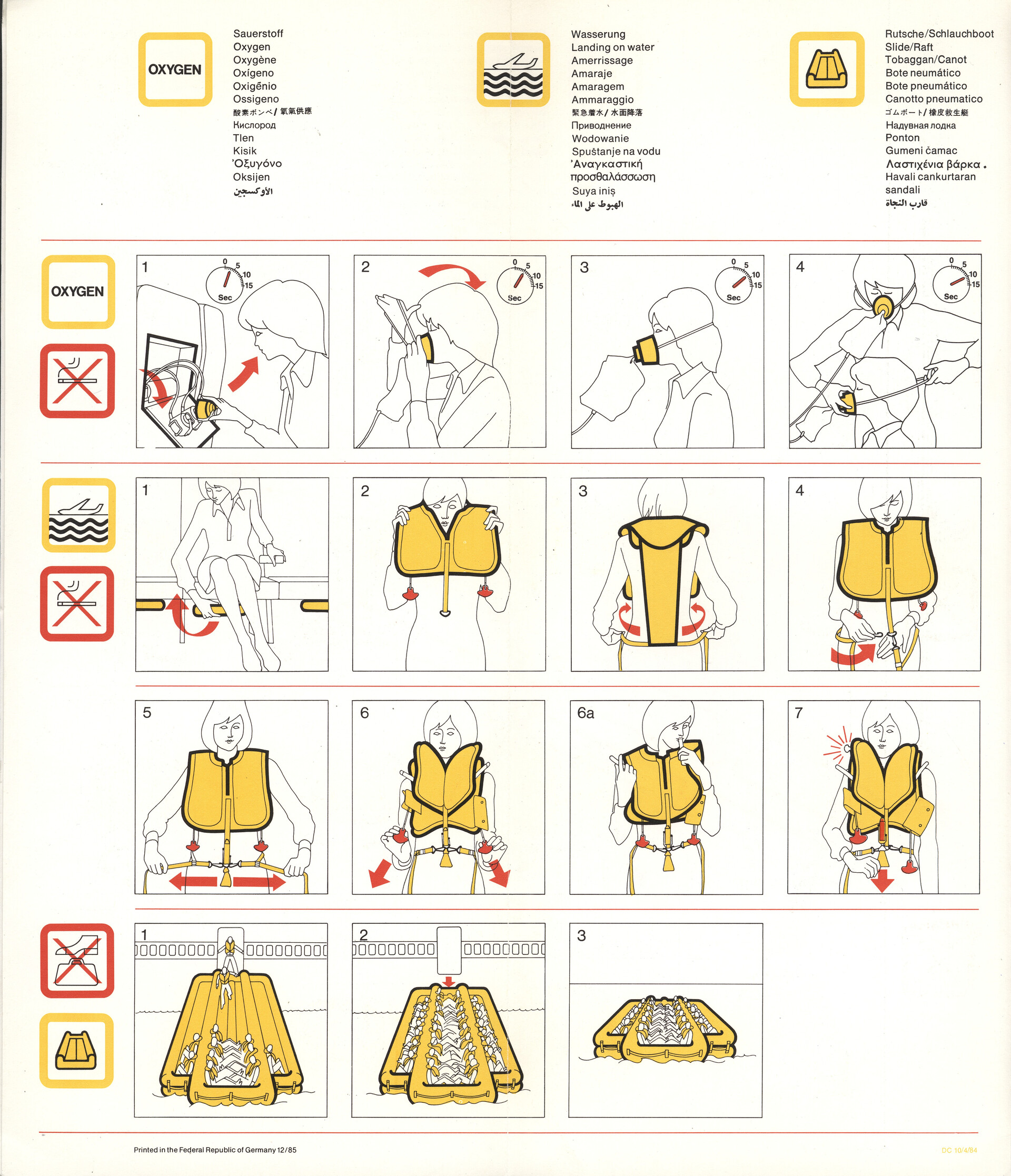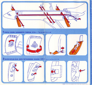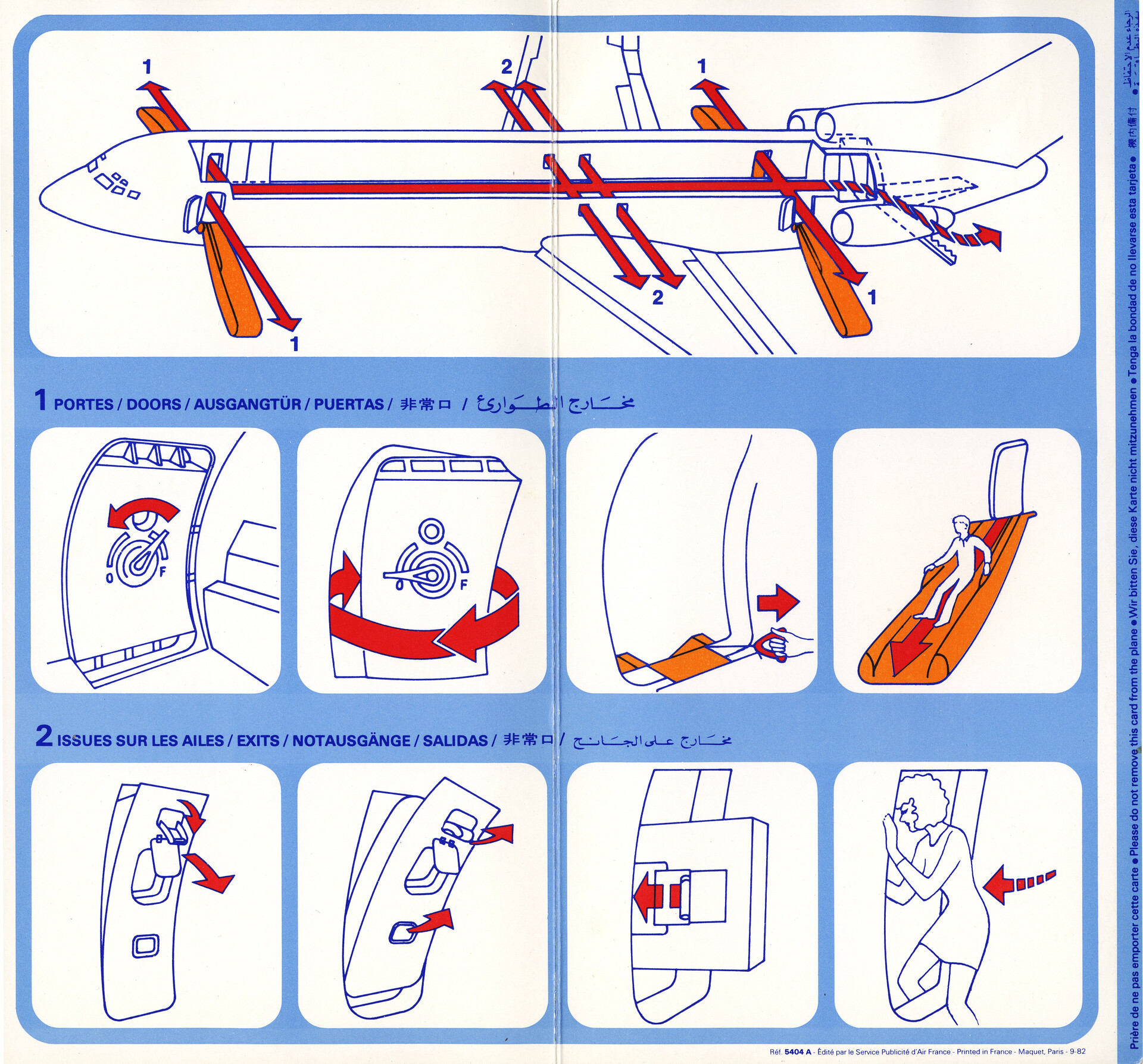 »Welcome onboard our SuperOneEleven, ...« Infografik vom Feinsten. Hübsche Puppen springen aus dem Fenster, gleiten auf Plastikrutschen. Alles zu unseren Sicherheit. Immer wieder lesen!