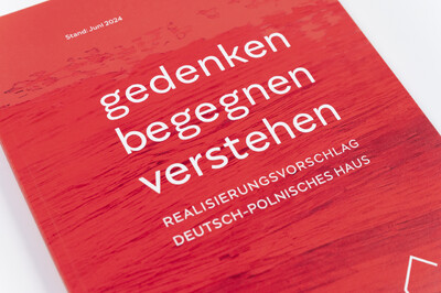 Die sachliche, informationsorientierte Gestaltung umfasst ein modernes Logo, das Assoziationen zur Beziehung zwischen Deutschland und Polen sowie zur Idee eines offenen Hauses weckt. So unterstreicht die visuelle Sprache Verlässlichkeit, Verständlichkeit und die Seriosität des erinnerungspolitischen Projekts.