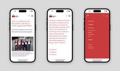 Das Deutsch-Polnische Haus ist das erinnerungspolitische Projekt der Bundesregierung zu den deutsch-polnischen Beziehungen. Als „Haus ohne Ort“ wird es bereits heute öffentlich wirksam. Wir haben das Projekt durch Namensfindung und Identitätsentwicklung, durch die Gestaltung der Website sowie durch die visuelle Ausstattung von Veranstaltungen sichtbar gemacht und im öffentlichen Diskurs verankert.
