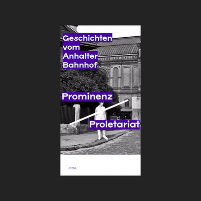 Website mit Geschichten vom Anhalter Bahnhof. Erinnerungen an freudvolle Abfahrten zu fernen Reisezielen, an das Wiederkommen in die Heimat, stehen neben Berichten von Flucht ins Ungewisse oder Deportation in den Tod. Der von Birthe Freymann konzipierte Onepager wirft Schlaglichter auf den Anhalter Bahnhof – einst Kristallisationspunkt einer wachsenden Metropole, heute Sportplatz.