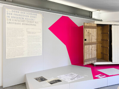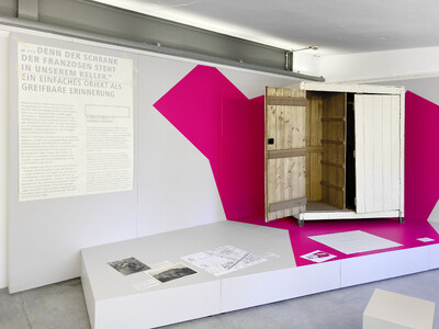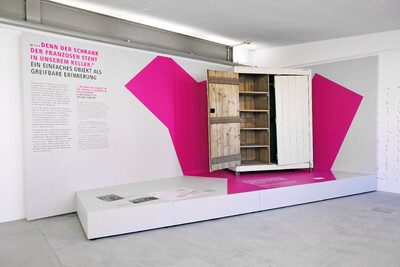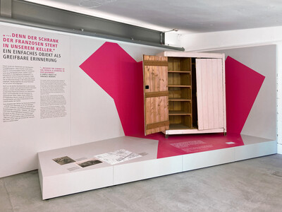 Auftakt der Präsentation war ein Holzschrank, zwischen 1940 und 1945 von französischen Zwangsarbeitern für die Familie Erdmann in Berlin gefertigt. Rosemarie Erdmann, Zeitzeugin und Bewahrerin des Schranks, hat ihre Erlebnisse niedergeschrieben.