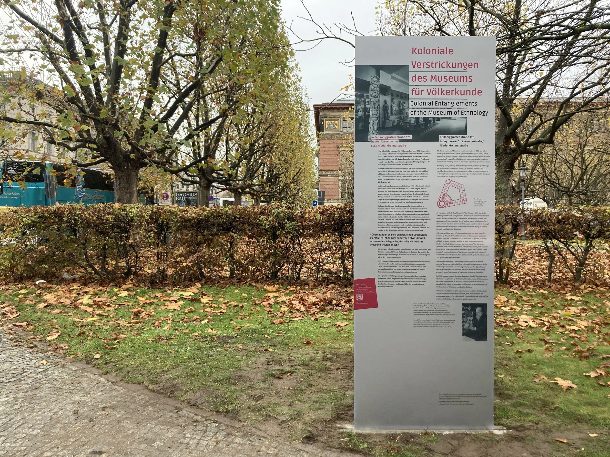 Bezirksbürgermeisterin Clara Herrmann: „Diese Gedenktafel offenbart, dass sich die gewaltsame deutsche Kolonialgeschichte auch direkt im Herzen unseres Bezirks entfaltet hat. Das Völkerkundemuseum war mit seiner rassistischen Forschung, den imperialistischen Sammelmethoden und Ausstellungen im Grunde ein einzigartiges Raubkunst-Depot. So müssen wir uns als Stadtgesellschaft heute auch mit der Geschichte der Objekte kritisch auseinandersetzen und hinterfragen, durch welche Menschen, Methoden und Systeme koloniales Unrecht entstanden ist und wie sich das auf die Geschichte des Bezirks ausgewirkt hat.“
